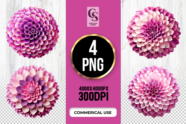 4 Pink Dahlia Flower Sphere Clipart Sublimation PNG Files Perfect for Greeting Cards, Invitations, Junk Journal, Party Decor, Scrapbooking and many other craft projects.