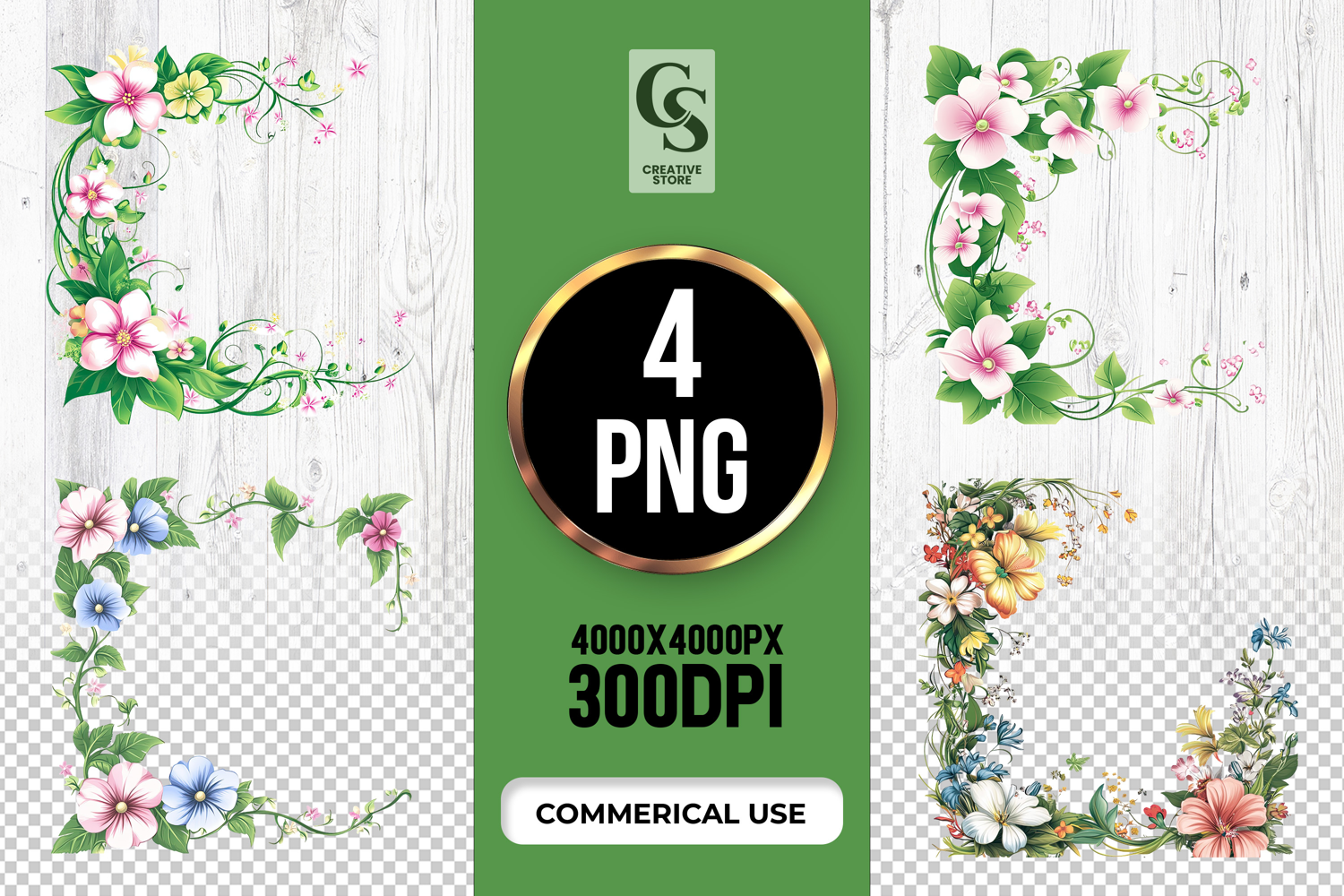 4 Floral Border Frame Clipart Sublimation PNG Files Perfect for Greeting Cards, Invitations, Junk Journal, Party Decor, Scrapbooking and many other craft projects.