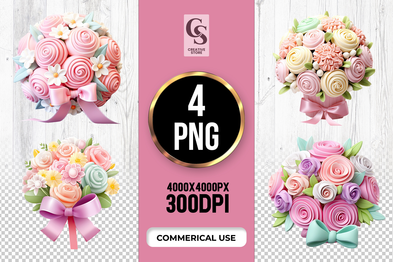 4 Cute Pastel Flower Bouquet Clipart Sublimation PNG Files Perfect for Greeting Cards, Invitations, Junk Journal, Party Decor, Scrapbooking and many other craft projects.
