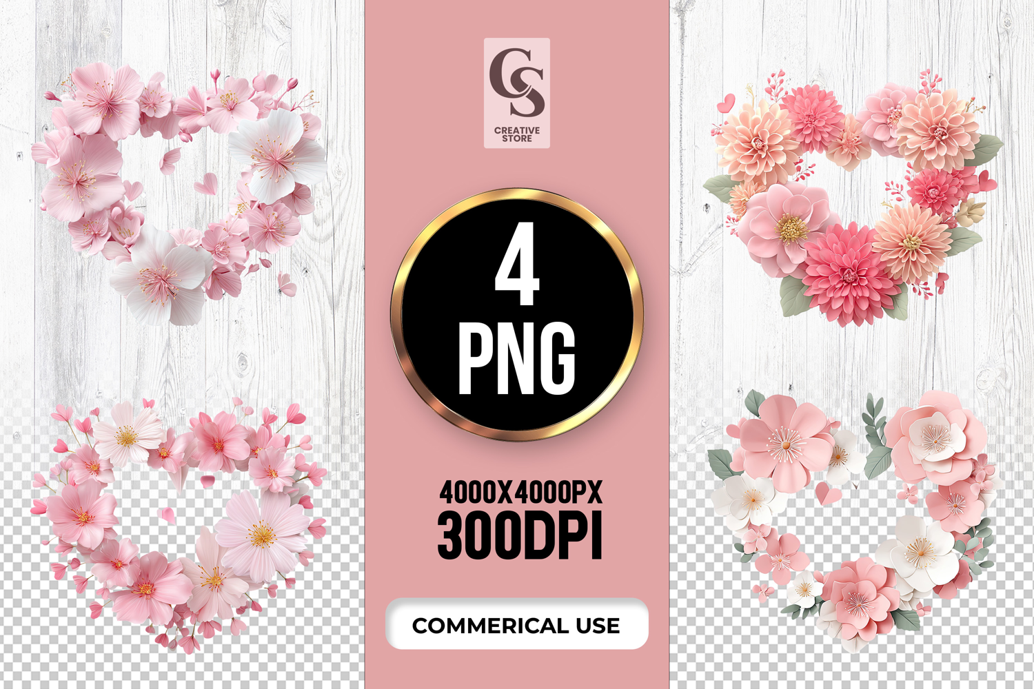 4 Pink Floral Heart Frame Clipart Sublimation PNG Files Perfect for Greeting Cards, Invitations, Junk Journal, Party Decor, Scrapbooking and many other craft projects.