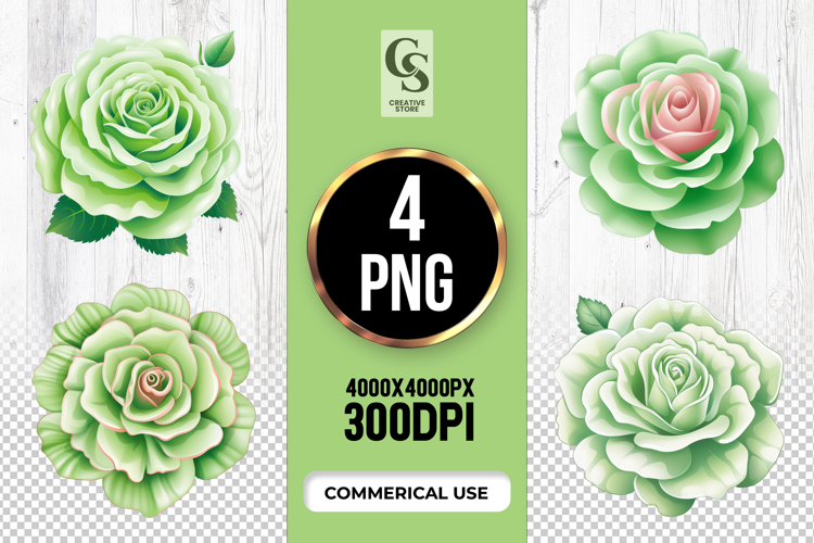 4 Green Rose Clipart Sublimation PNG Files Perfect for Greeting Cards, Invitations, Junk Journal, Party Decor, Scrapbooking and many other craft projects.