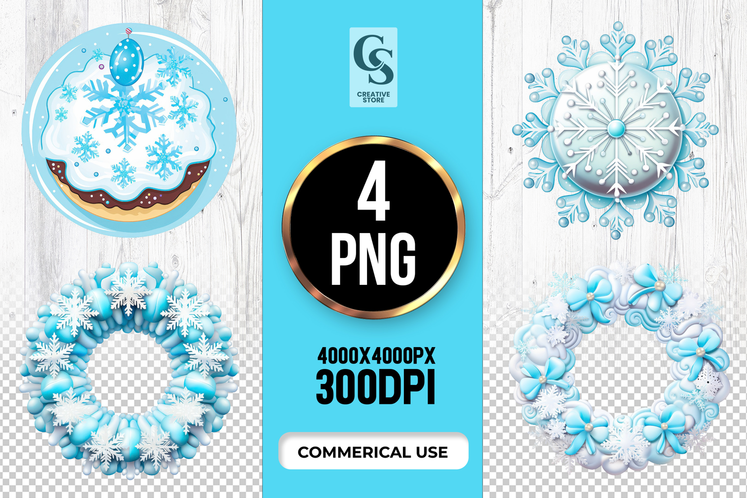 4 Blue Snowflake Wreath Clipart Sublimation PNG Files Perfect for Greeting Cards, Invitations, Junk Journal, Party Decor, Scrapbooking and many other craft projects.