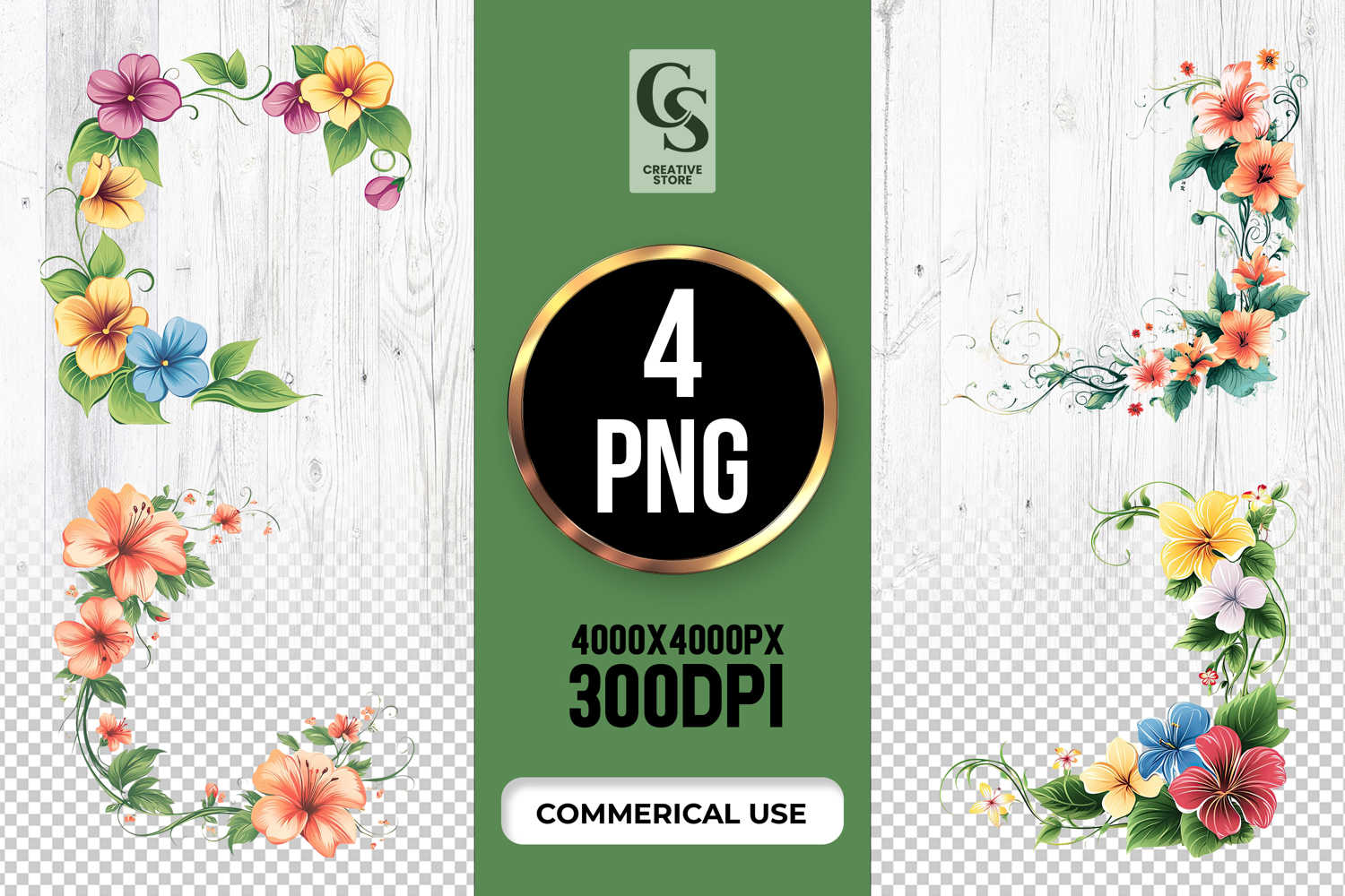 4 Tropical Floral Corner Clipart Sublimation PNG Files Perfect for Greeting Cards, Invitations, Junk Journal, Party Decor, Scrapbooking and many other craft projects.