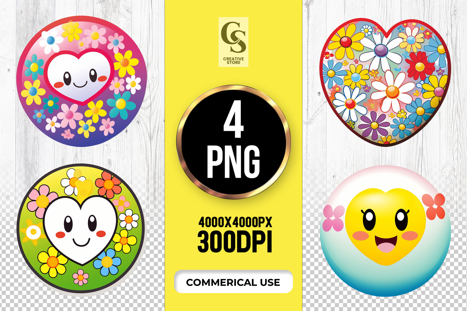 4 Cute Floral Heart Clipart Sublimation PNG Files Perfect for Greeting Cards, Invitations, Junk Journal, Party Decor, Scrapbooking and many other craft projects.