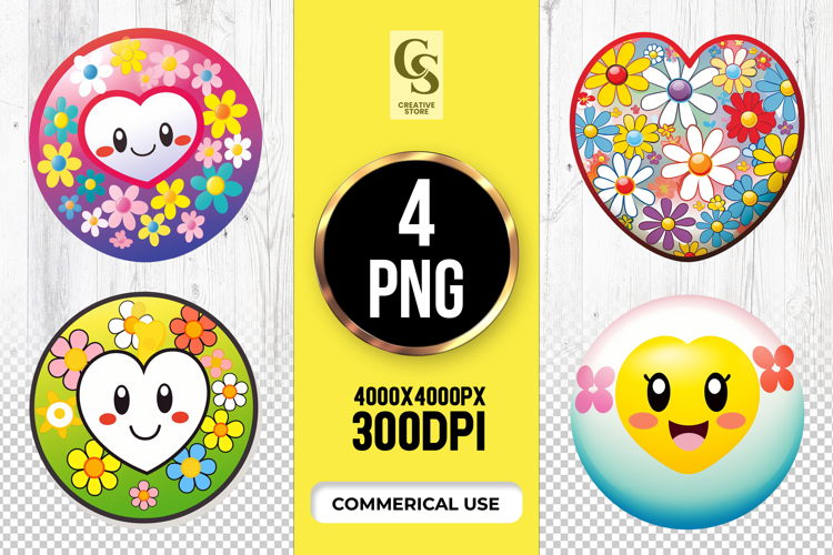Floral Heart Clipart Flower Heart Sublimation Cute Heart Png Decorative Heart Png Kawaii Floral Clipart Happy Heart Png Cartoon Flower Clipart Cute Floral Design Colorful Heart Illustration Heart Character Sublimation