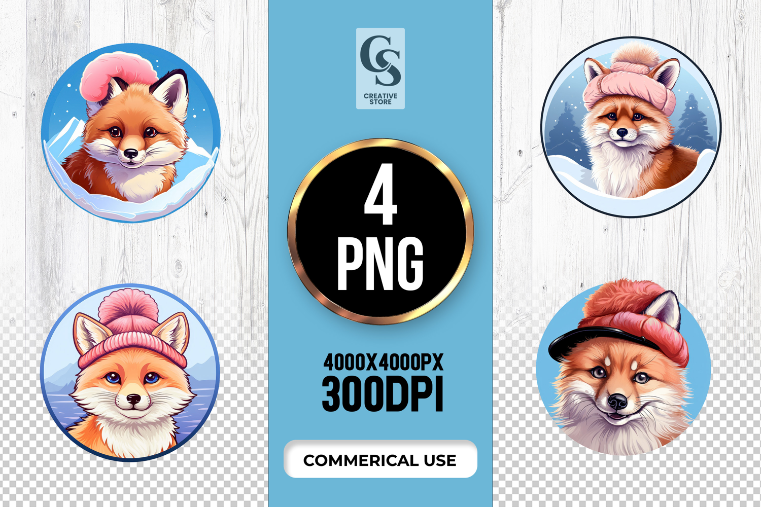 4 Mountain Winter Fox Clipart Sublimation PNG Files Perfect for Greeting Cards, Invitations, Junk Journal, Party Decor, Scrapbooking and many other craft projects.