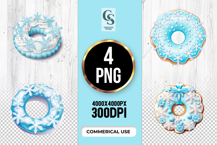 4 Winter Themed Donut Clipart Sublimation PNG Files Perfect for Greeting Cards, Invitations, Junk Journal, Party Decor, Scrapbooking and many other craft projects.