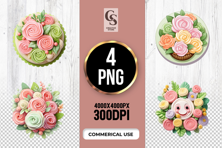 4 Pink and Yellow Rose Cake Bouquet Clipart Sublimation PNG Files Perfect for Greeting Cards, Invitations, Junk Journal, Party Decor, Scrapbooking and many other craft projects.