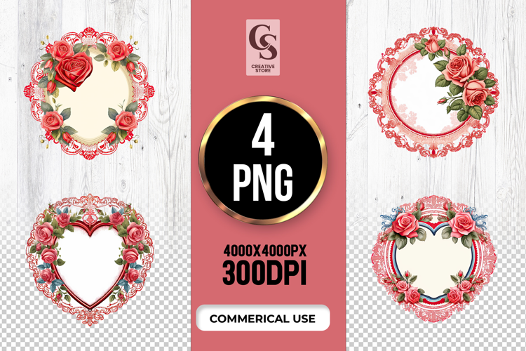 4 Rose Frame Clipart Sublimation PNG Files Perfect for Greeting Cards, Invitations, Junk Journal, Party Decor, Scrapbooking and many other craft projects.