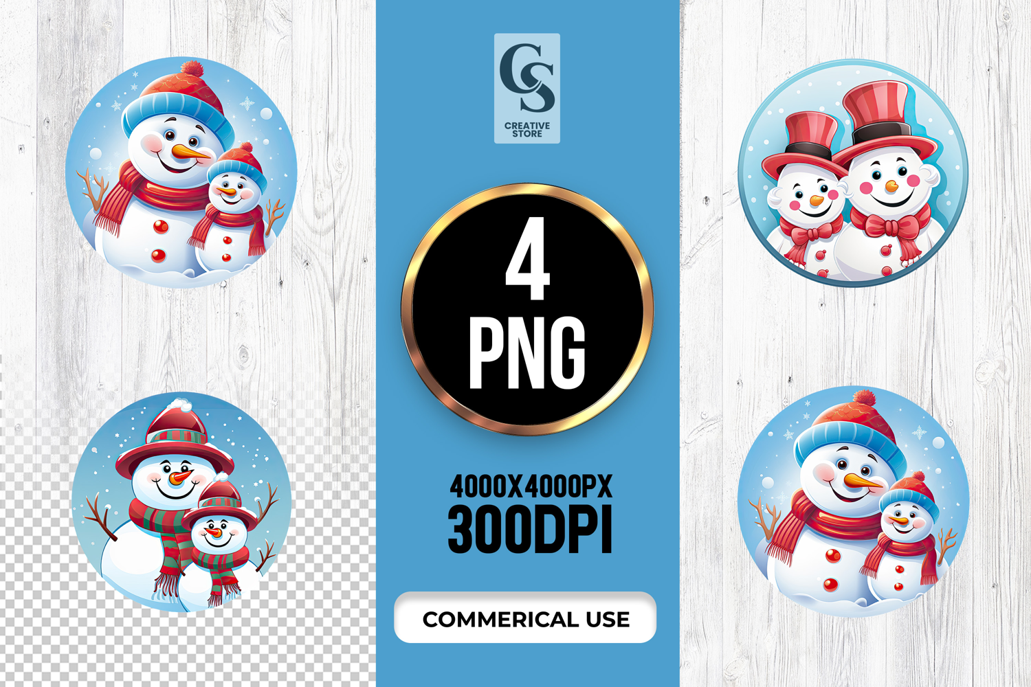 4 Cute Snowman Illustration Clipart Sublimation PNG Files Perfect for Greeting Cards, Invitations, Junk Journal, Party Decor, Scrapbooking and many other craft projects.