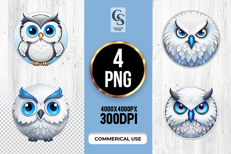 White Owl Clipart Cartoon Owl Png Baby Owl Sublimation Digital Owl Artwork Forest Bird Sublimation Blue Eyed Clipart Wise Owl Graphics Animal Head Graphics Round Owl Stickers North Bird Clipart