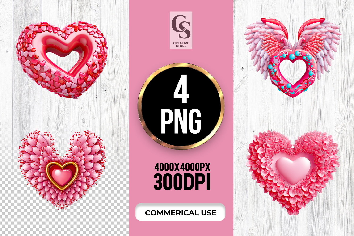 4 Decorative Heart Shape Wreath Clipart Sublimation PNG Files Perfect for Greeting Cards, Invitations, Junk Journal, Party Decor, Scrapbooking and many other craft projects.