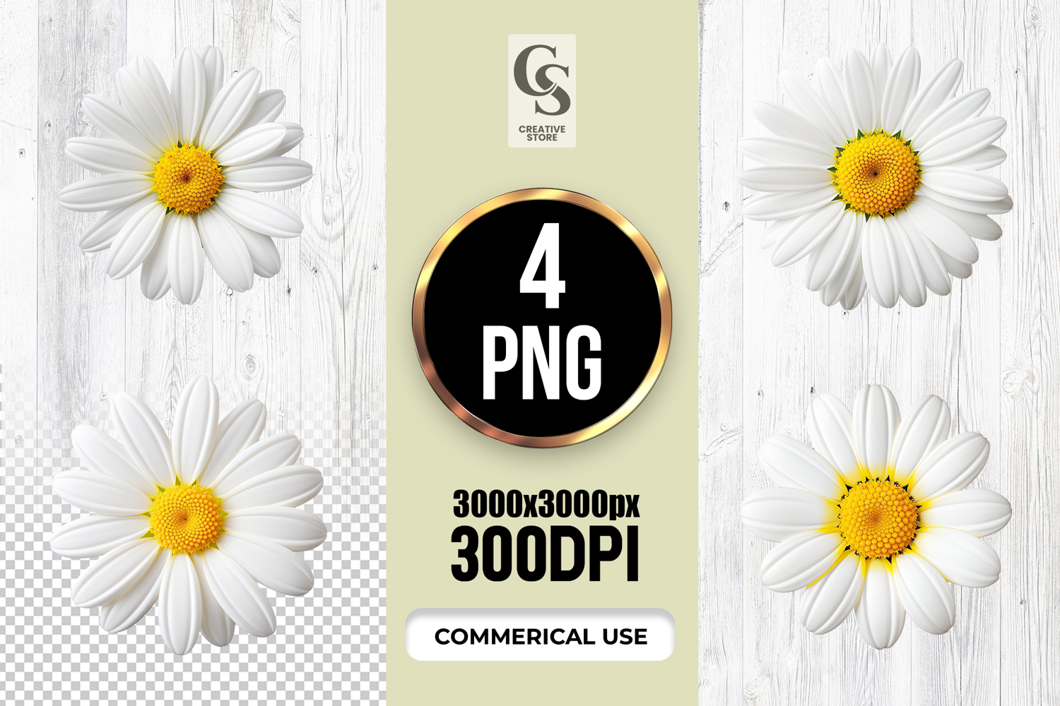 4 White Daisy Flower Clipart Sublimation PNG Files Perfect for Greeting Cards, Invitations, Junk Journal, Party Decor, Scrapbooking and many other craft projects.