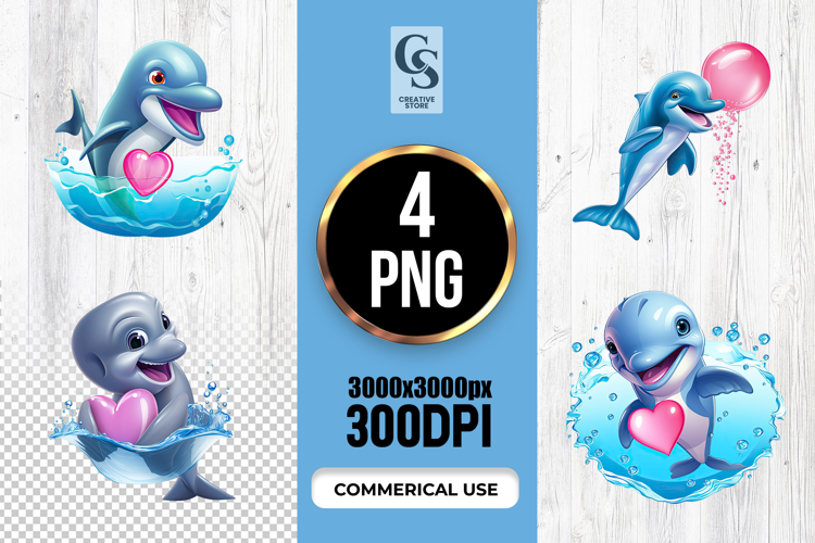 4 Cute Dolphin With Heart Clipart Sublimation PNG Files Perfect for Greeting Cards, Invitations, Junk Journal, Party Decor, Scrapbooking and many other craft projects.