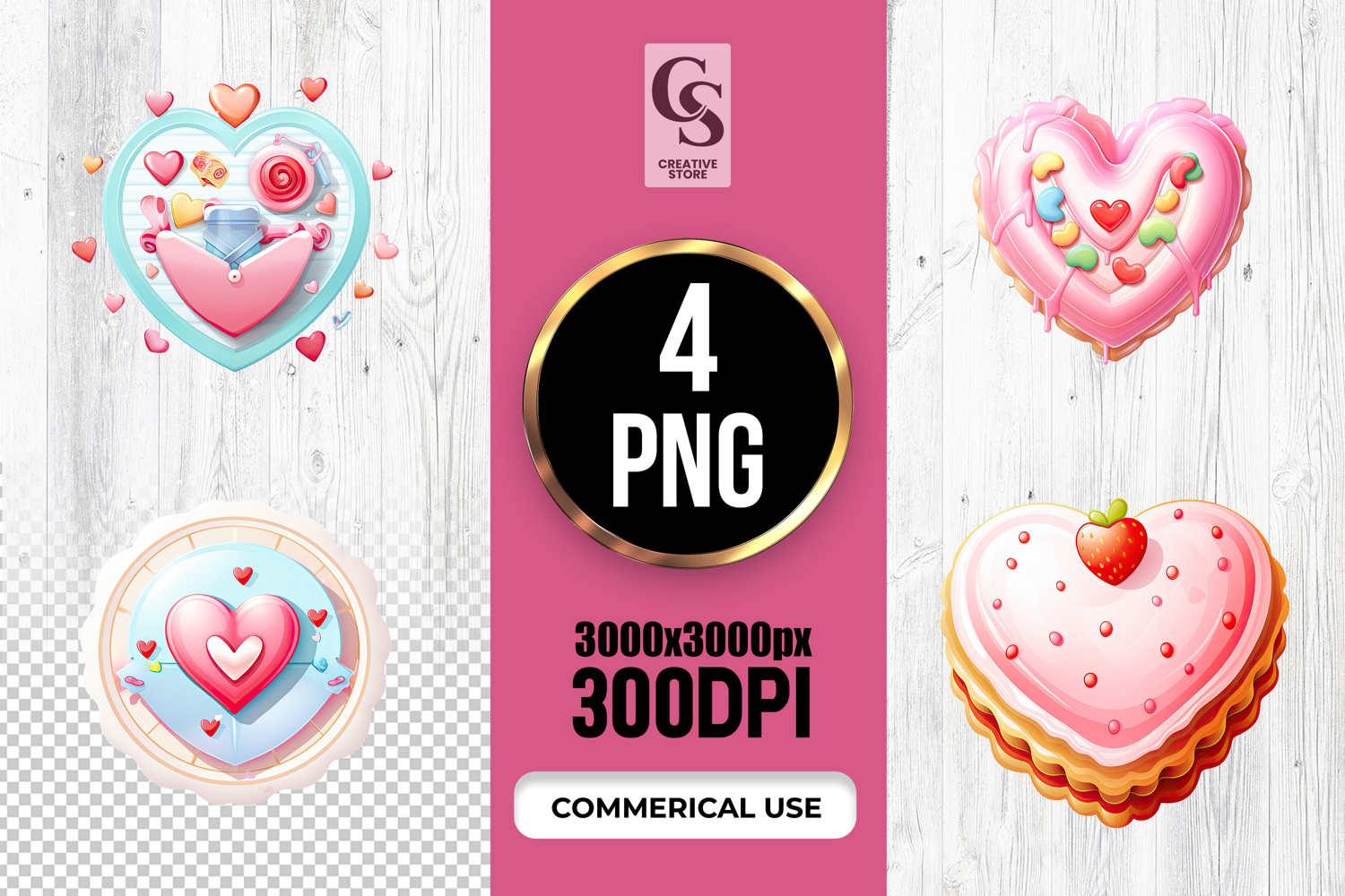 4 Cute Heart Dessert Treat Clipart Sublimation PNG Files Perfect for Greeting Cards, Invitations, Junk Journal, Party Decor, Scrapbooking and many other craft projects.