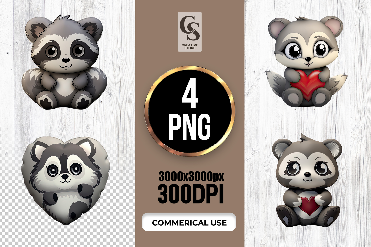 4 Cute Baby Raccoon Clipart Sublimation PNG Files Perfect for Greeting Cards, Invitations, Junk Journal, Party Decor, Scrapbooking and many other craft projects.