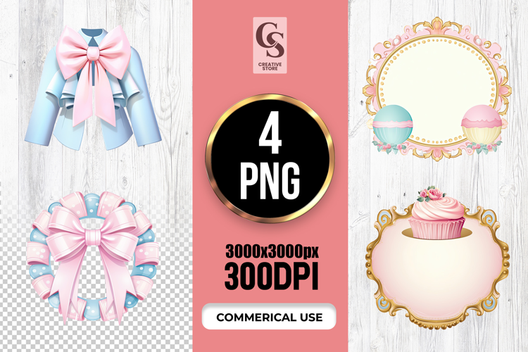 4 Pastel Bow Frame Decor Clipart Sublimation PNG Files Perfect for Greeting Cards, Invitations, Junk Journal, Party Decor, Scrapbooking and many other craft projects.