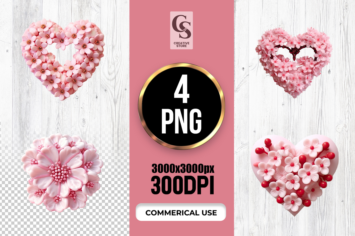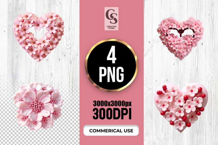 4 Pink Blossom Heart Floral Clipart Sublimation PNG Files Perfect for Greeting Cards, Invitations, Junk Journal, Party Decor, Scrapbooking and many other craft projects.