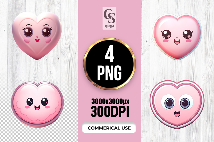 4 Cute Pink Heart Face Clipart Sublimation PNG Files Perfect for Greeting Cards, Invitations, Junk Journal, Party Decor, Scrapbooking and many other craft projects.