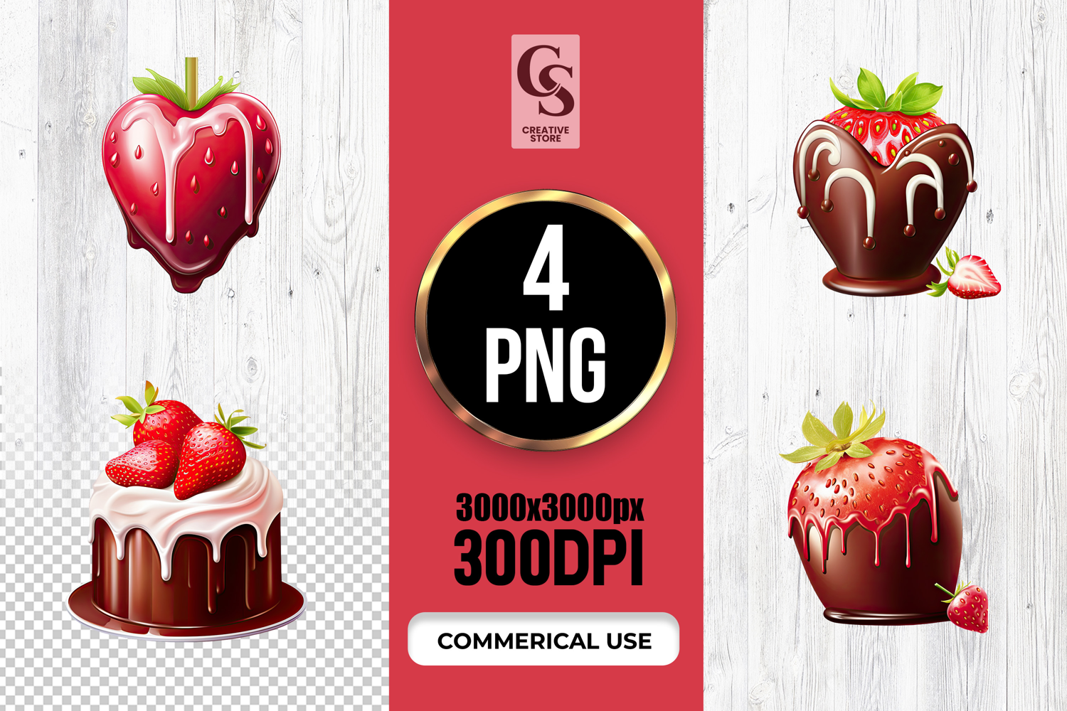 4 Chocolate Dipped Strawberry Sublimation Clipart PNG Files Perfect for Greeting Cards, Invitations, Junk Journal, Party Decor, Scrapbooking and many other craft projects.