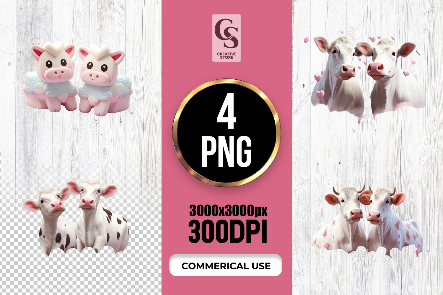 4 Cute Baby Cow Couple Sublimation Clipart PNG Files Perfect for Greeting Cards, Invitations, Junk Journal, Party Decor, Scrapbooking and many other craft projects.
