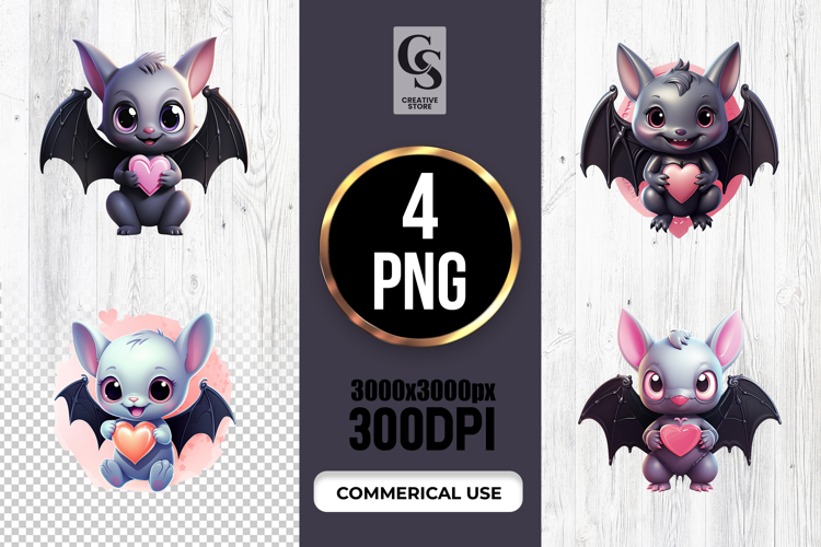 4 Cute Baby Bat Heart Sublimation Clipart PNG Files Perfect for Greeting Cards, Invitations, Junk Journal, Party Decor, Scrapbooking and many other craft projects.