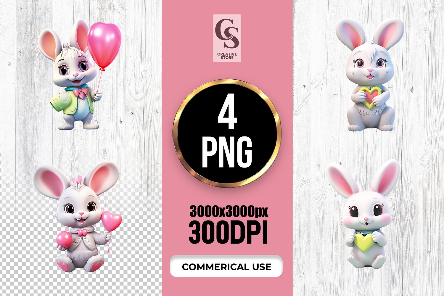 4 Cute Kawaii Bunny Love Character Sublimation PNG Files Perfect for Greeting Cards, Invitations, Junk Journal, Party Decor, Scrapbooking and many other craft projects.