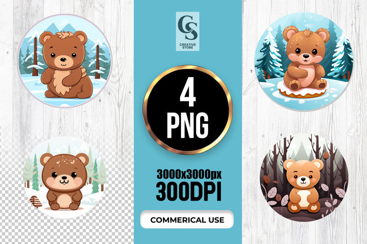 4 Cute Baby Bear Winter Forest PNG Files Perfect for Greeting Cards, Invitations, Junk Journal, Party Decor, Scrapbooking and many other craft projects.