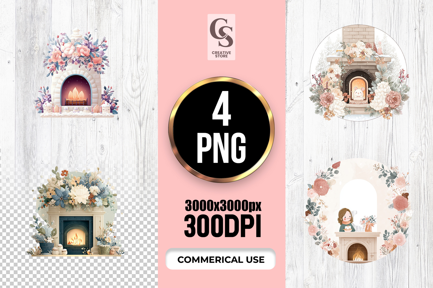4 Floral Fireplace Arch Illustration PNG Files Perfect for Greeting Cards, Invitations, Junk Journal, Party Decor, Scrapbooking and many other craft projects.