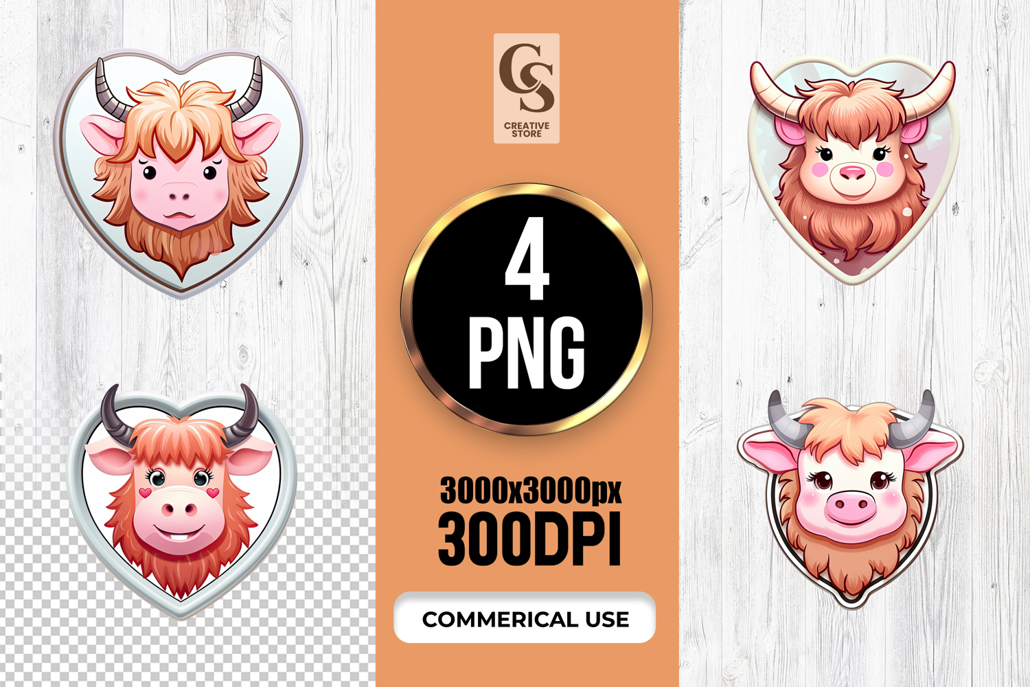 4 Cute Highland Cow Face Heart Frame Valentine PNG Files Perfect for Greeting Cards, Invitations, Junk Journal, Party Decor, Scrapbooking and many other craft projects.