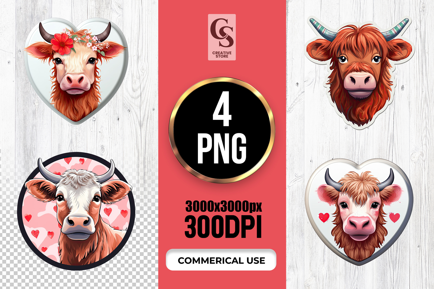 4 Highland Cow Valentine Heart Portrait SVG PNG Files Perfect for Greeting Cards, Invitations, Junk Journal, Party Decor, Scrapbooking and many other craft projects.