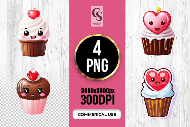 4 Cute Heart Cupcake Clipart Sublimation PNG Files Perfect for Greeting Cards, Invitations, Junk Journal, Party Decor, Scrapbooking and many other craft projects.
