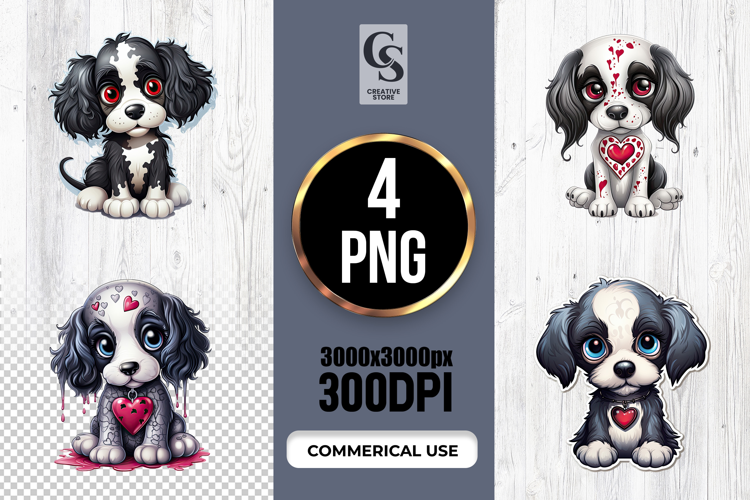 4 Cute Puppy With Heart Clipart Sublimation PNG Files Perfect for Greeting Cards, Invitations, Junk Journal, Party Decor, Scrapbooking and many other craft projects.