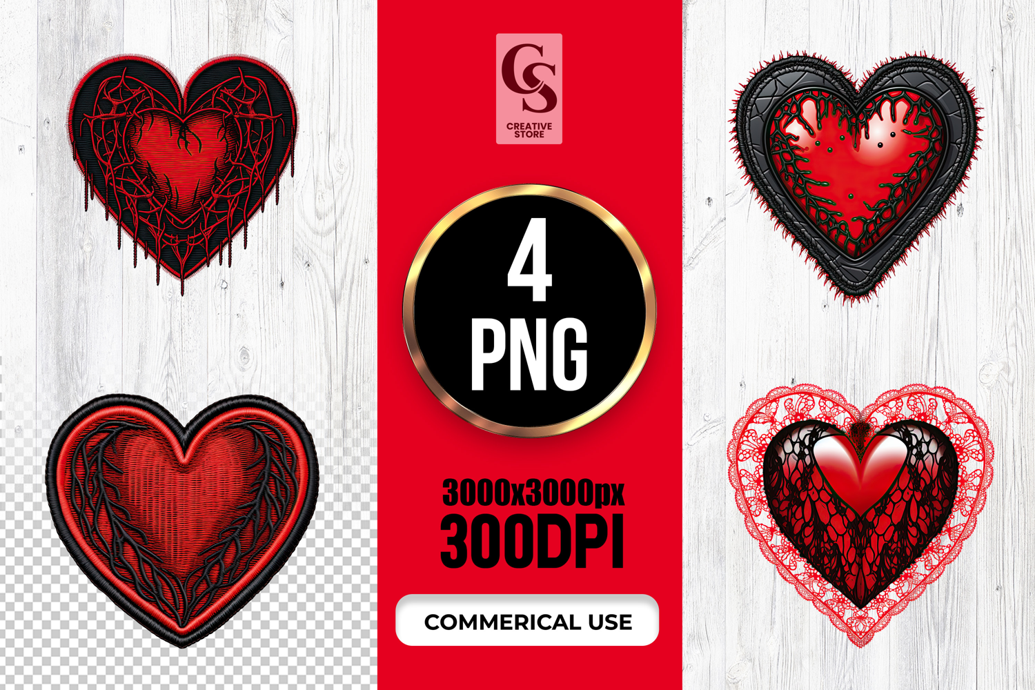 4 Gothic Dark Heart Lace Valentine Clipart PNG Files Perfect for Greeting Cards, Invitations, Junk Journal, Party Decor, Scrapbooking and many other craft projects.
