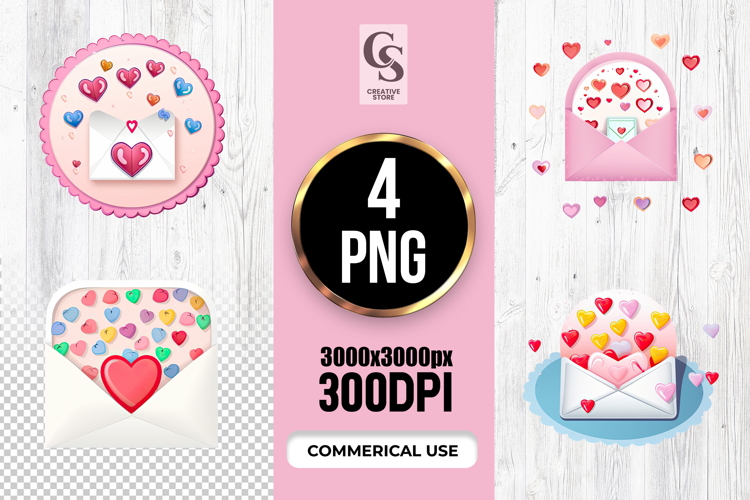 4 Cute Love Letter Envelope Clipart PNG Files Perfect for Greeting Cards, Invitations, Junk Journal, Party Decor, Scrapbooking and many other craft projects.