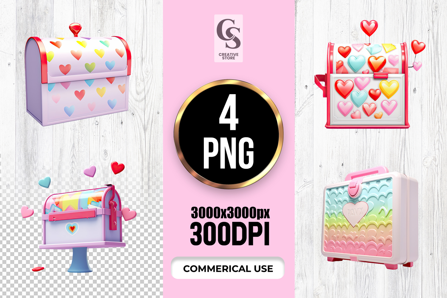 4 Cute Heart Mailbox Love Letter Clipart PNG Files Perfect for Greeting Cards, Invitations, Junk Journal, Party Decor, Scrapbooking and many other craft projects.