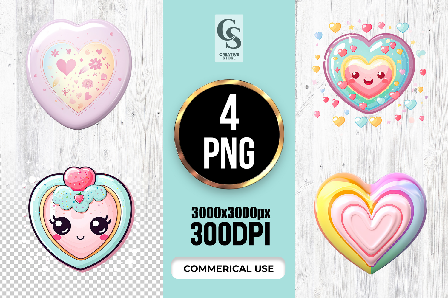 4 Cute Pastel Heart Illustration Clipart Sublimation PNG Files Perfect for Greeting Cards, Invitations, Junk Journal, Party Decor, Scrapbooking and many other craft projects.