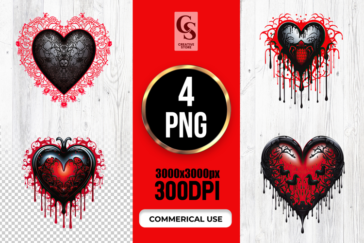 4 Dark Gothic Dripping Heart png Files Perfect for Greeting Cards, Invitations, Junk Journal, Party Decor, Scrapbooking and many other craft projects.