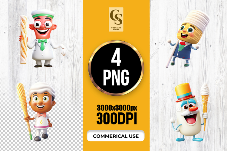 4 Cartoon Ice Cream Chef Character Clipart Sublimation PNG Files Perfect for Greeting Cards, Invitations, Junk Journal, Party Decor, Scrapbooking and many other craft projects.