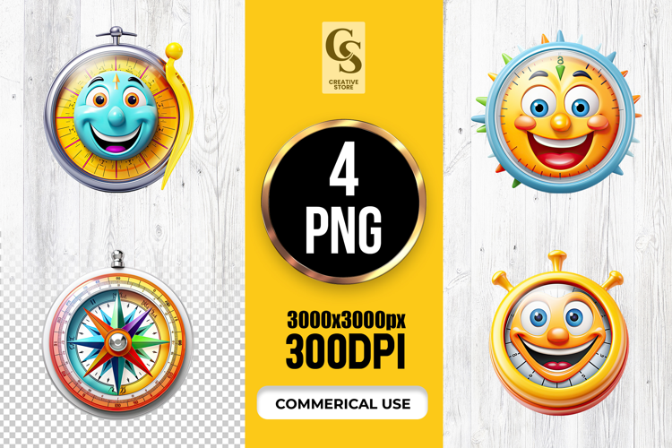 4 Cute Compass Characters Clipart Sublimation PNG Files Perfect for Greeting Cards, Invitations, Junk Journal, Party Decor, Scrapbooking and many other craft projects.
