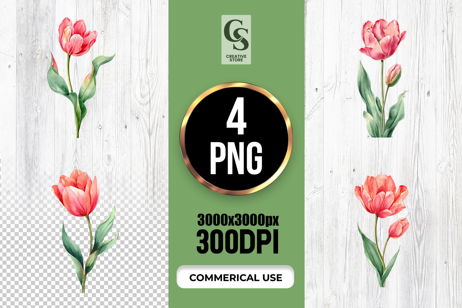 4 Watercolor Single Tulip Flower Clipart Sublimation PNG Files Perfect for Greeting Cards, Invitations, Junk Journal, Party Decor, Scrapbooking and many other craft projects.
