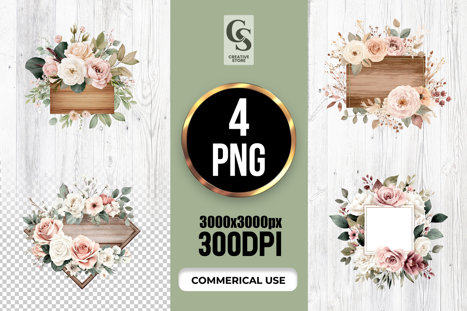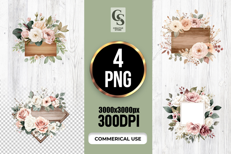 4 Watercolor Floral Wooden Sign Clipart Sublimation PNG Files Perfect for Greeting Cards, Invitations, Junk Journal, Party Decor, Scrapbooking and many other craft projects.