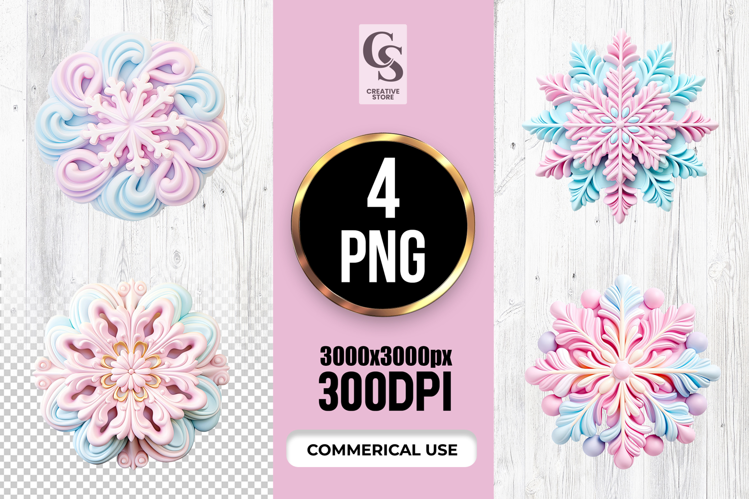 4 Pastel 3D Snowflake Ornament Clipart Sublimation PNG Files Perfect for Greeting Cards, Invitations, Junk Journal, Party Decor, Scrapbooking and many other craft projects.