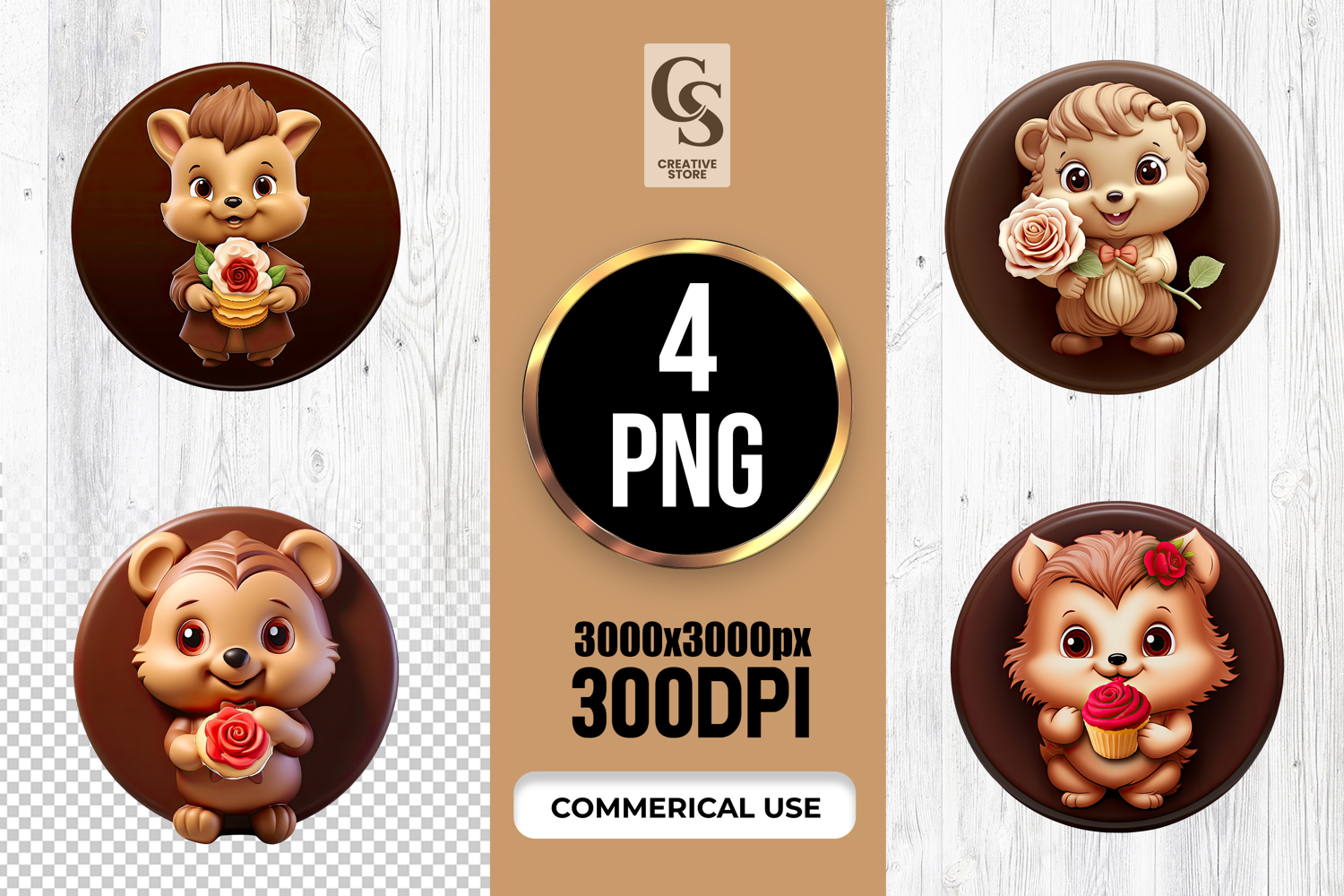 4 Cute Woodland Animal With Rose Clipart PNG Files Perfect for Greeting Cards, Invitations, Junk Journal, Party Decor, Scrapbooking and many other craft projects.