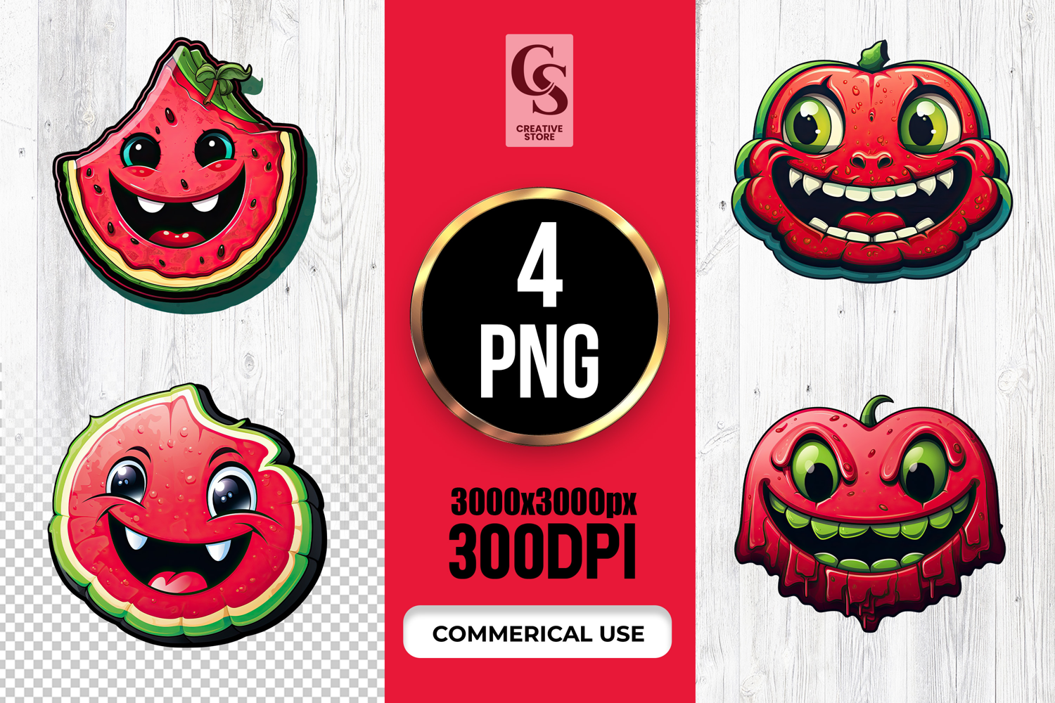 4 Cute Watermelon Characters Clipart Sublimation PNG Files Perfect for Greeting Cards, Invitations, Junk Journal, Party Decor, Scrapbooking and many other craft projects.