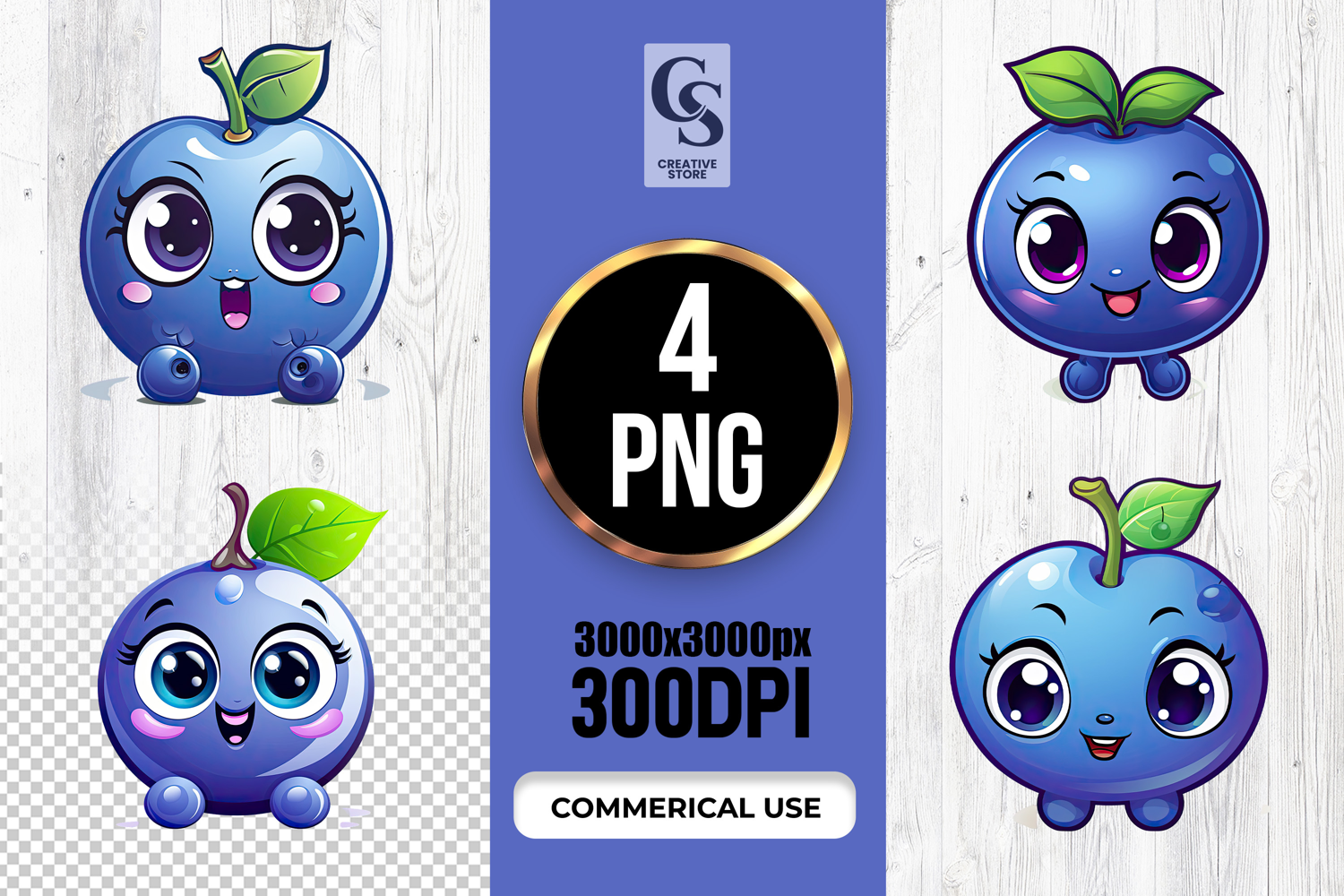 4 Cute Blueberry Characters Clipart Sublimation PNG Files Perfect for Greeting Cards, Invitations, Junk Journal, Party Decor, Scrapbooking and many other craft projects.
