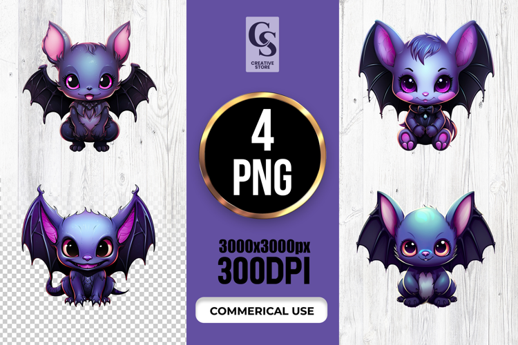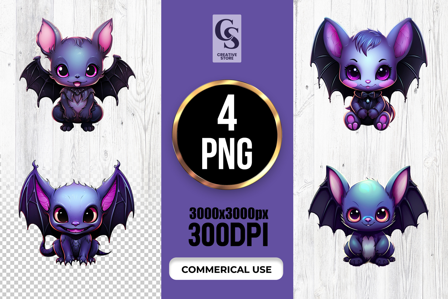 4 Cute Baby Bat Character Clipart Sublimation PNG Files Perfect for Greeting Cards, Invitations, Junk Journal, Party Decor, Scrapbooking and many other craft projects.