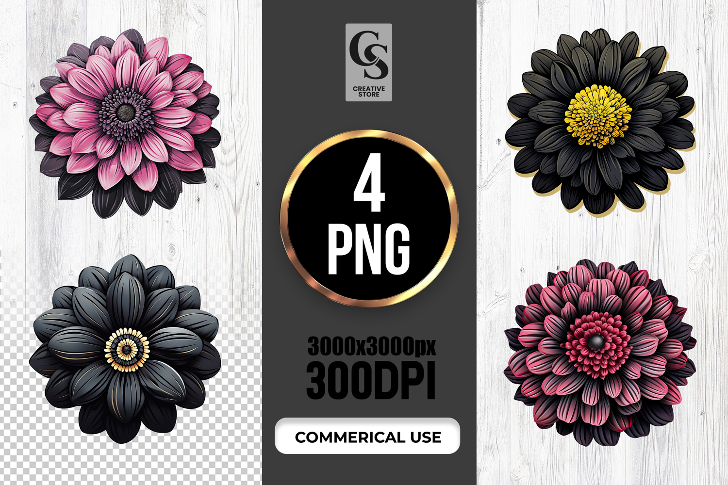 4 Gothic Dark Dahlia Flower Clipart Sublimation PNG Files Perfect for Greeting Cards, Invitations, Junk Journal, Party Decor, Scrapbooking and many other craft projects.