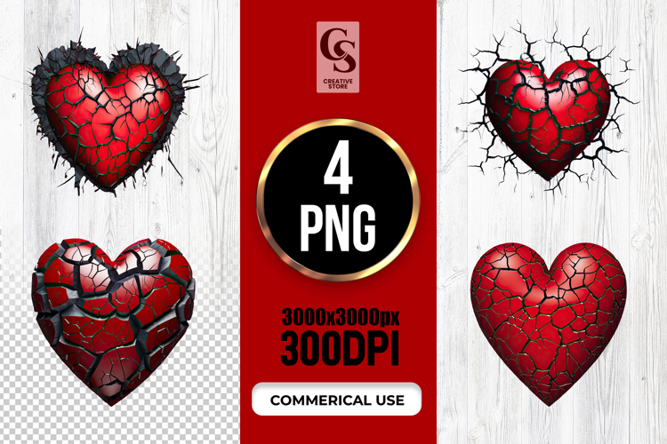 4 Cracked Red Stone Heart Clipart Sublimation PNG Files Perfect for Greeting Cards, Invitations, Junk Journal, Party Decor, Scrapbooking and many other craft projects.