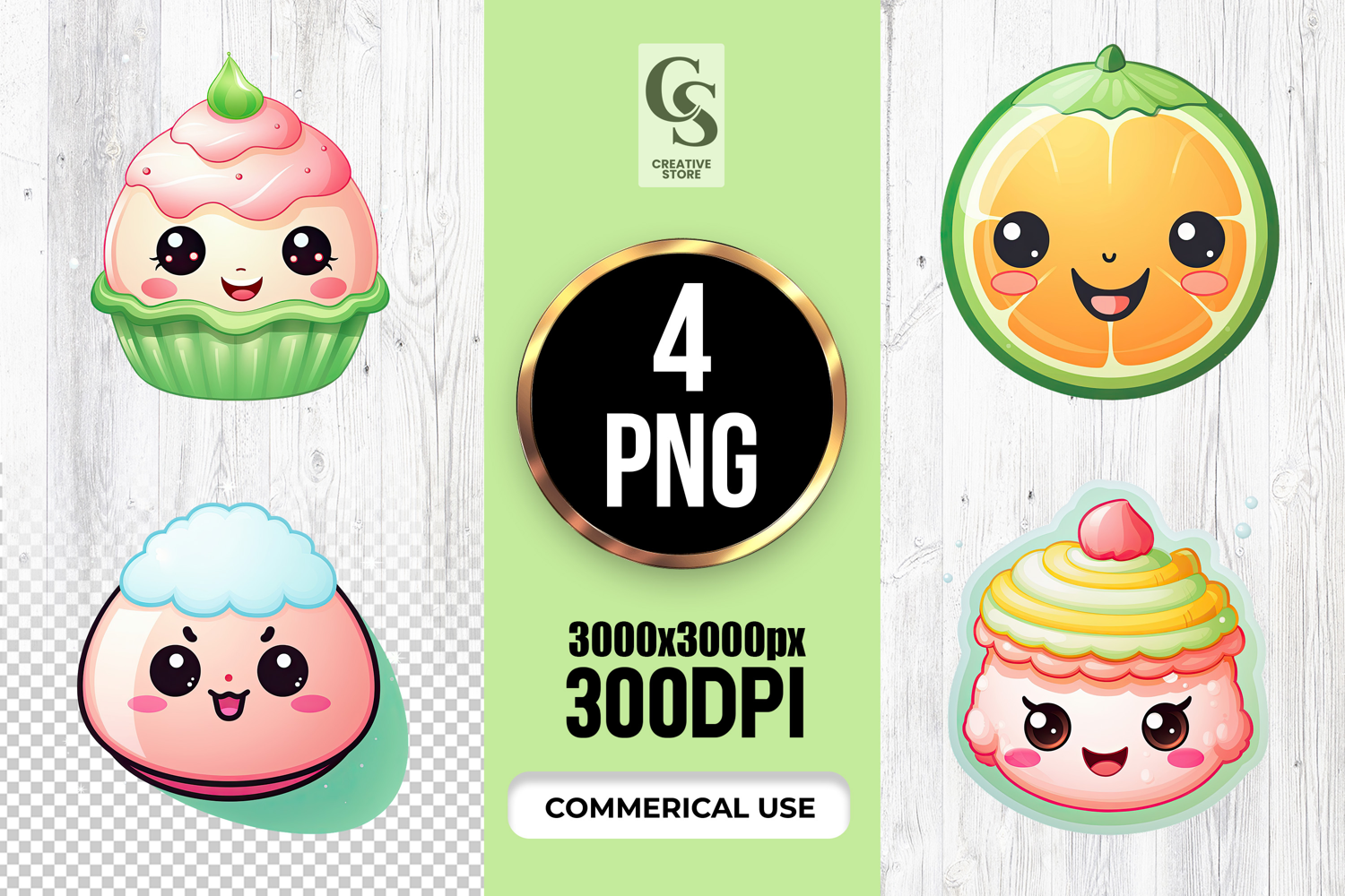 4 Cute Kawaii Dessert and Fruit Clipart Sublimation PNG Files Perfect for Greeting Cards, Invitations, Junk Journal, Party Decor, Scrapbooking and many other craft projects.